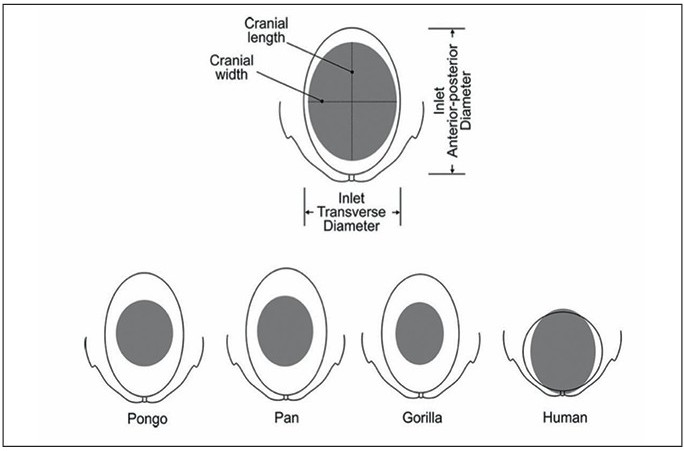 Menneskets evolution er karakteriseret ved et bemærkelsesværdigt kompromis mellem bevægelse og hjerneudvikling. Med udviklingen af oprejst gang tilpassede de anatomiske strukturer sig, især dem i kvindens bækken. Et bækken, der var for bredt, ville have kompromitteret stabiliteten ved oprejst gang, mens et, der var for smalt, ville have gjort det vanskeligt at føde børn med relativt store hoveder. Samtidig fortsatte hjernevolumen med at vokse for at muliggøre komplekse kognitive evner såsom tænkning og sprog. 3, 4, 5 Denne konflikt mellem bækkenstørrelse og hovedvolumen førte til det, der er kendt som det obstetriske dilemma. 6 Den evolutionære løsning på dilemmaet var, at menneskebørn blev født, før deres hjerner var fuldt udviklede. Som et resultat heraf er nyfødte relativt umodne sammenlignet med andre primater: Selvom de har næsten alle deres neuroner, sker dannelsen af de funktionelle neurale netværk overvejende efter fødslen. 7
