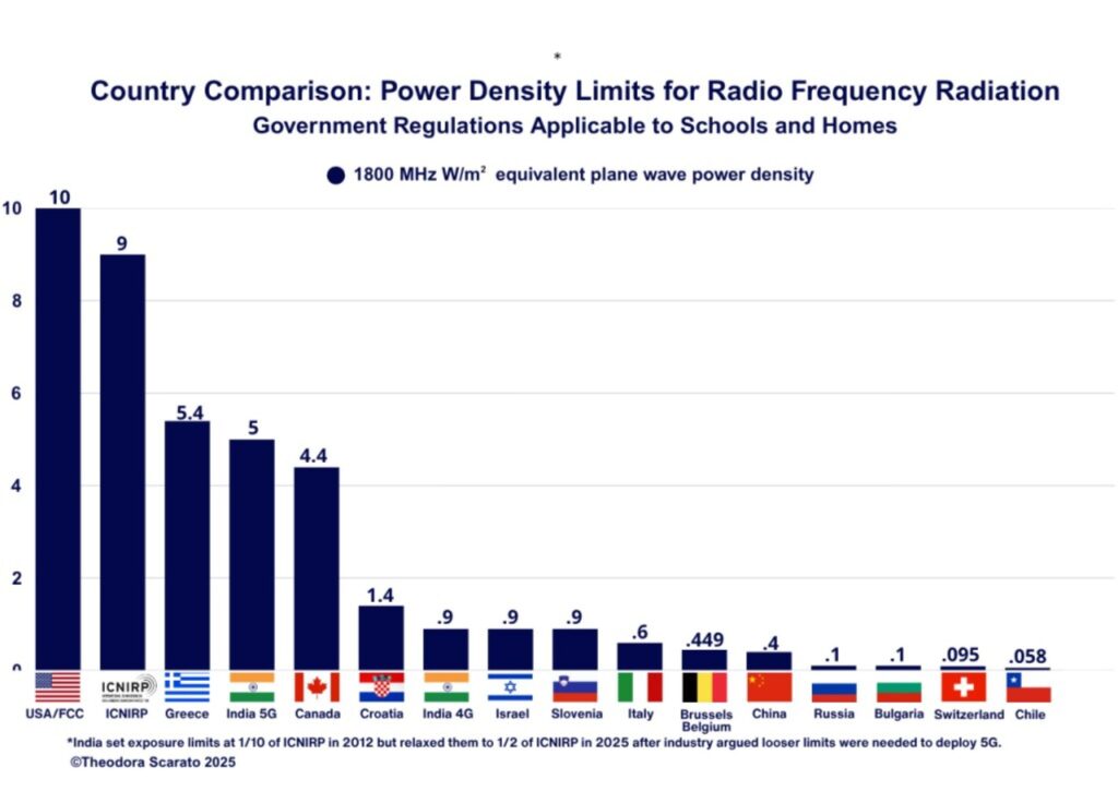 Danmark er sammen med de fleste Nato lande, herunder de nordiske lande og USA, blandt de lande, der tillader de højeste niveauer af radiofrekvent stråling (RF) fra mobilmaster. Grænseværdierne er forblevet uændrede siden hhv. 1998 og 1996, det på trods af hundredvis af videnskabelige studier, der har fundet sundhedsskadelige effekter endog langt under de gældende grænseværdier. Forskning der i hvert fald siden 1966 har dokumenterede helbredsmæssige skadeeffekter ved elektromagnetiske felter.
