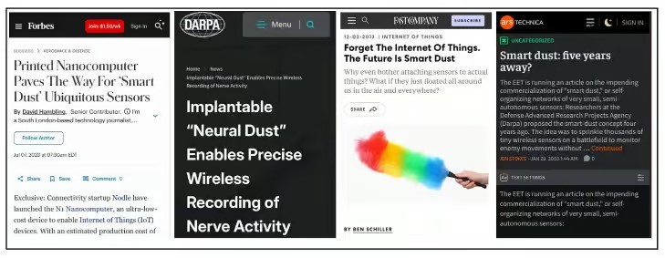 - MIT Technology Review (2013). “How Smart Dust Could Spy on Your Brain.”https://www.technologyreview.com/2013/07/16/177343/how-smart-dust-could-spy-on-your-brain/