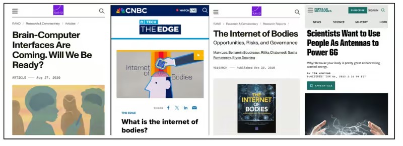 - RAND Corporation (2020). “The Internet of Bodies Will Change Everything, for Better or Worse.” https://www.rand.org/pubs/articles/2020/the-internet-of-bodies-will-change-everything-for-better-or-worse.html