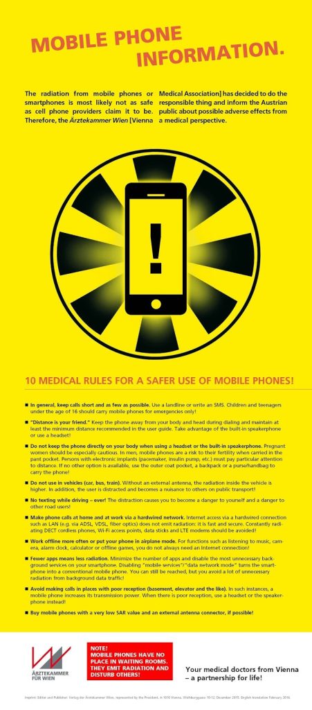 Januar 2016: Wiens lægeforening har udstedt 10 retningslinjer for mobiltelefoner: